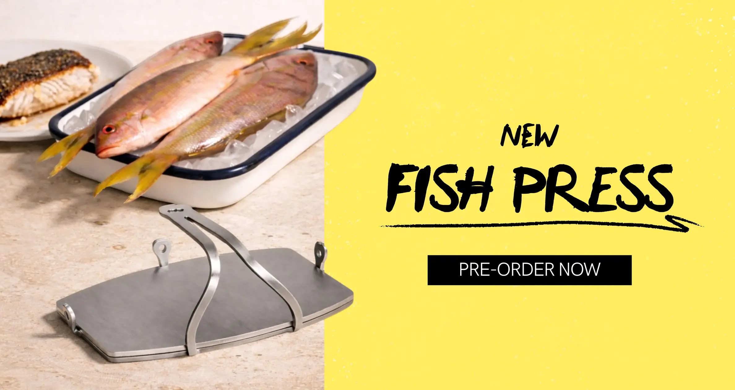 Precision-weight fish press made from 3mm non-nickel stainless steel. Modular design with removable plate lets you customise pressure for fish, burgers, bacon, vegetables and more. Low maintenance. Built to last.