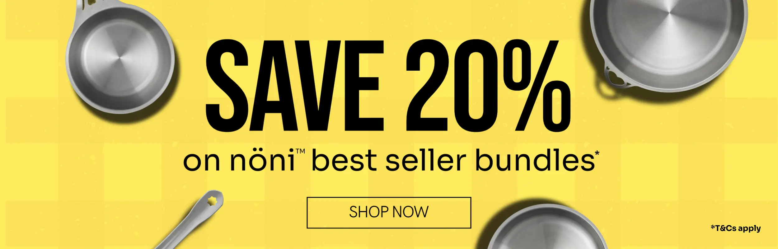 Shop our limited-time nöni™ stainless steel cookware sets, made in Australia and built for everyday cooking. Each bundle pairs our most-used pans (frypans and sauteuse) in seamless, non-nickel stainless steel with no synthetic coatings and induction compatibility. Choose the set that fits your household and save with introductory bundle pricing while it lasts. Valid on select sets only, while stocks last. T&Cs apply.