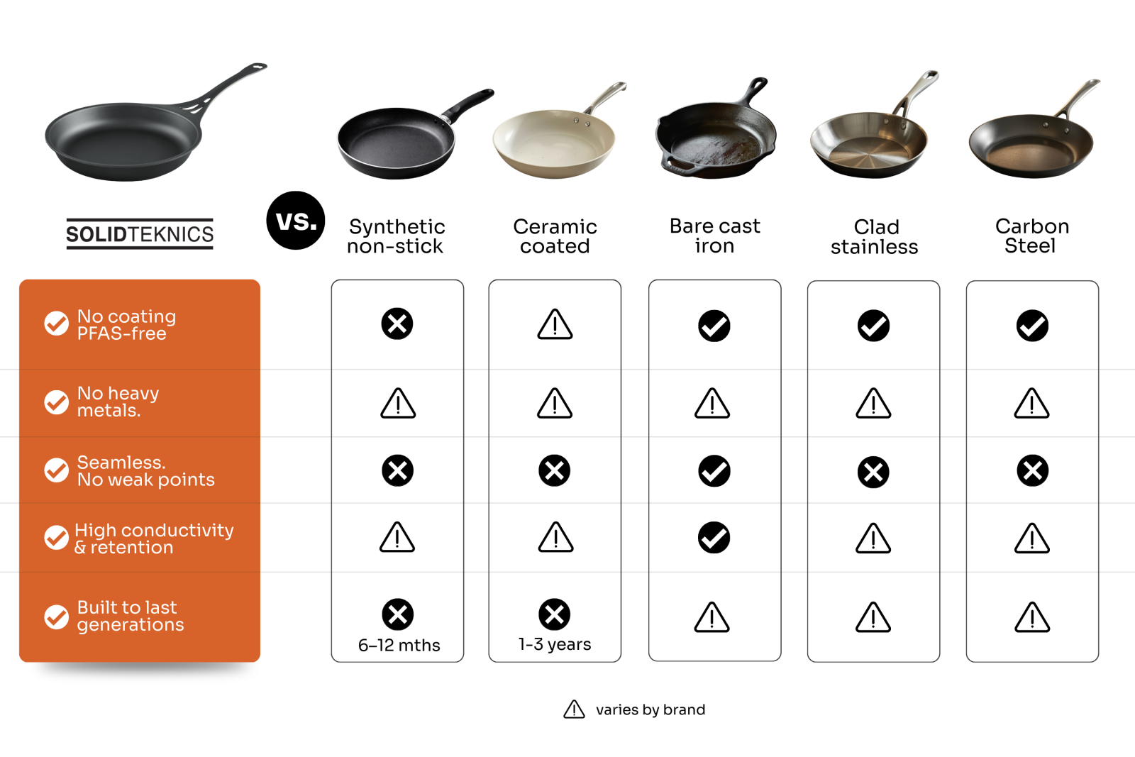 That’s exactly why Solidteknics is built for the long haul: solid wrought iron and stainless steel cookware with no coatings, no shortcuts, and performance that improves with time.