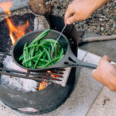 Crafted from a single piece of clean Australian iron, this sauteuse contains no synthetic coatings and is seasoned naturally with non-GMO rice bran oil. Use it on induction stovetops, inside ovens, or over open flames.