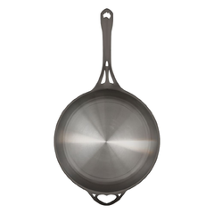 Our AUS-ION™ Polished pans can also handle acidic cooking without harm, since there’s no seasoning layer for acids to strip away. At the end of the day, though, they’re still solid wrought iron, which means a small amount of iron transfer is possible. This is harmless for most people, but may sometimes bring a subtle metallic note that stainless steel won’t.