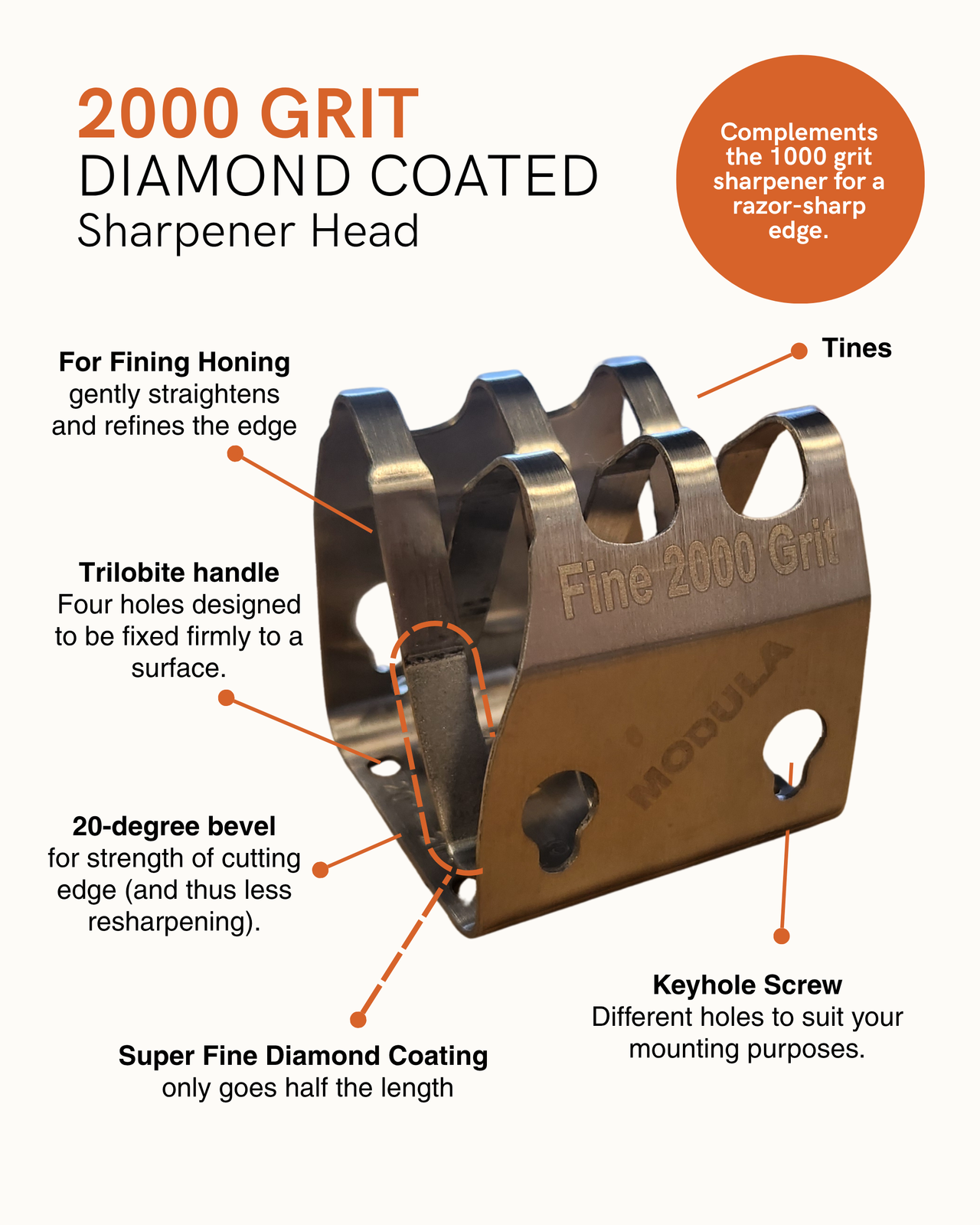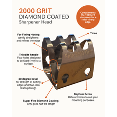 2000 grit suits knives that require razor-sharp edges (how we prefer most blades!), choose the 2000 grit modular sharpener. This fine grit quickly hones the edge of your knives to perfection, leaving them razor-sharp and ready for precision cutting. Our industrial diamond coating sharpening head is alos ideal for knives already in good condition.